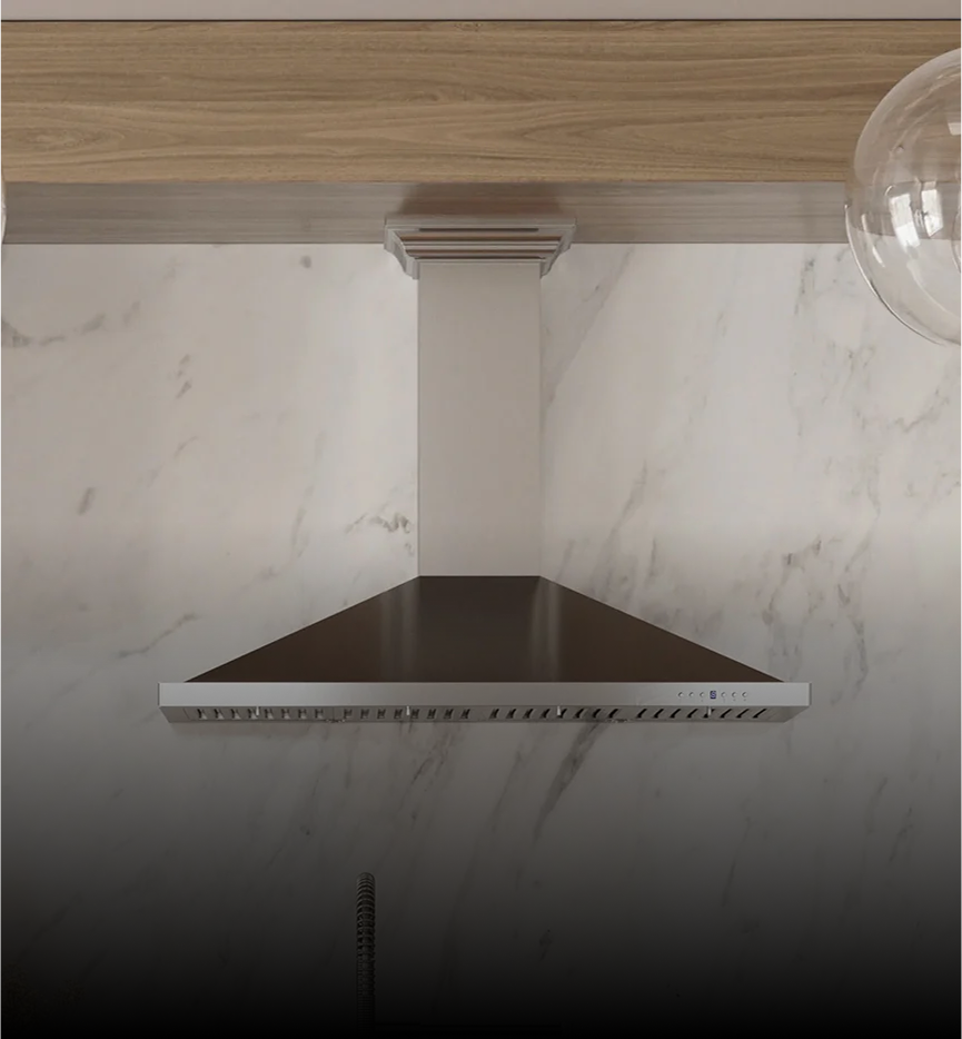 ZLINE Wall Mount Range Hoods deliver professional performance with built-to-last durability and timeless style, keeping your kitchen clean and fresh. Available in 24″ to 60″ sizes and a variety of finishes, including Stainless Steel, Black Stainless Steel, Satin Stainless Steel, Wood, Copper, Oil Rubbed Bronze, and Autograph Edition accents.