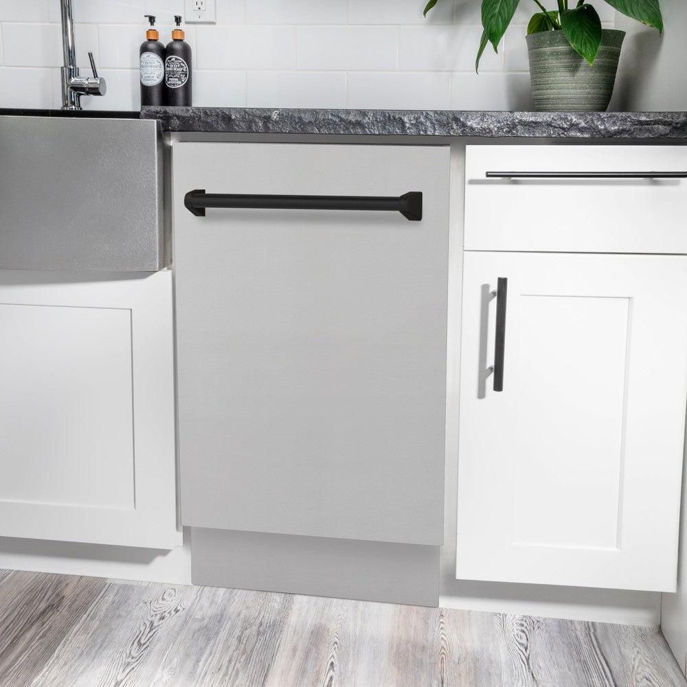 Luxury isn’t meant to be desired - it’s meant to be attainable. Designed in Lake Tahoe, USA, the ZLINE Autograph Edition 18” Compact 3rd Rack Top Control Dishwasher in Stainless Steel with Matte Black Handle, 51dBa (DWVZ-304-18-MB) provides a professional culinary experience by pairing unmatched performance with personalized touches. Encompassing limitless beauty, precision, and quality, the Autograph Edition Series creates a luxury look that will transform your space. Achieve ZLINE Attainable Luxury® excellence with innovative features designed to enhance your kitchen’s capability.